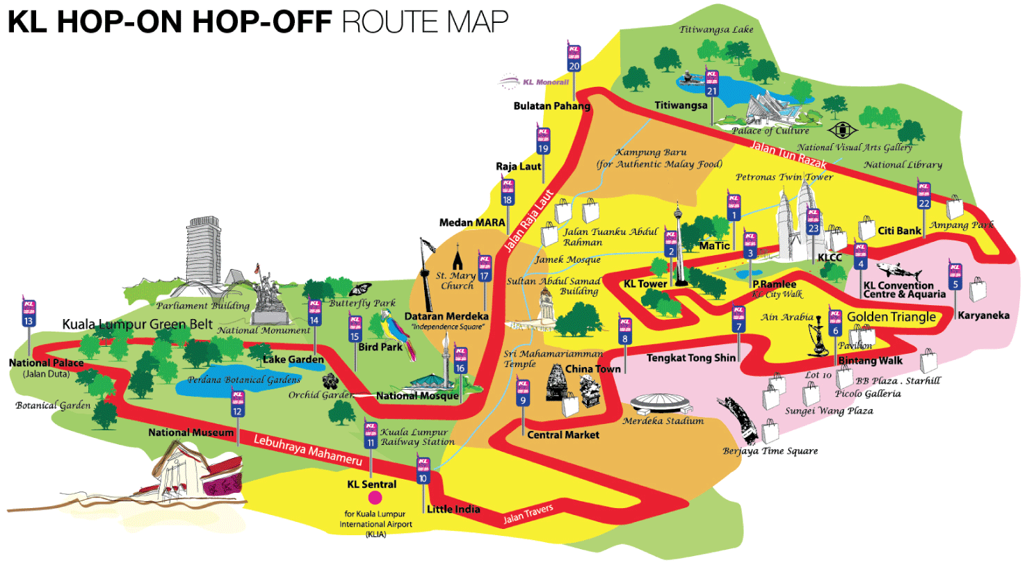 With Kuala Lumpur, hop-on-hop-off maps, exploring the city would be a lot easier, and visitors can keep track of their travel itinerary, and also refer to the printable Kuala Lumpur open bus tours maps, walking tour maps, and bus tour maps that keep them safe from getting lost in the city.